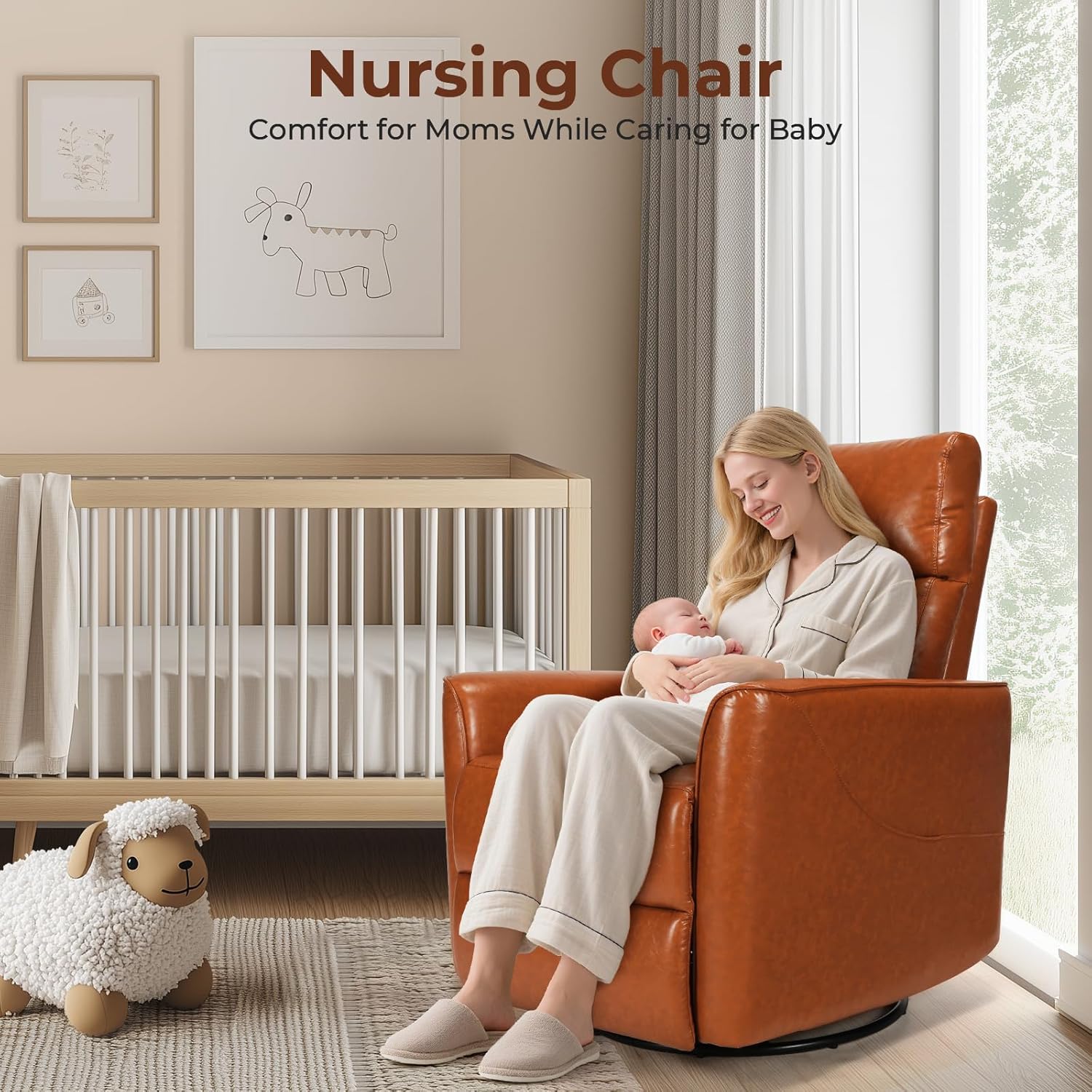 Multi-Function Recliner: This power glider swivel rocker recliner chair features 270° swivel, smooth and quiet gliding, 30° gentle rocking to help soothe your baby to sleep, and a 90°–135° adjustable recline. Operated easily with two buttons, it also offers massage and heating functions, providing adults with exceptional comfort whether reading, watching TV, or relaxing.