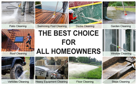 The Homdox pressure washer delivers it all to tackle a variety of cleaning tasks: homes, buildings, RV’s, cars, trucks, boats, decks, driveways, patios, lawn equipment, and more.
